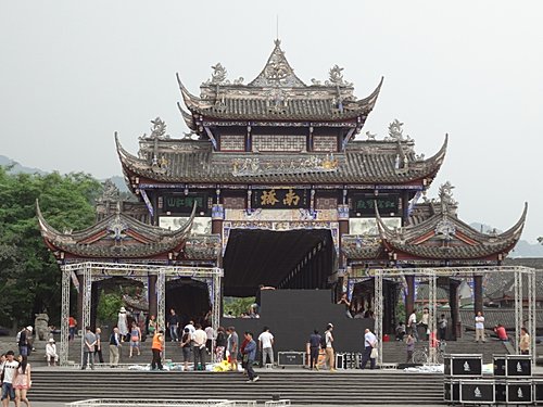 之後便逛景區門口的南橋美食街,在那裡還食了當地特色的炸醬甜水麵。最後到都江堰火車站坐七時多的火車回成都,大約九時才回到酒店。